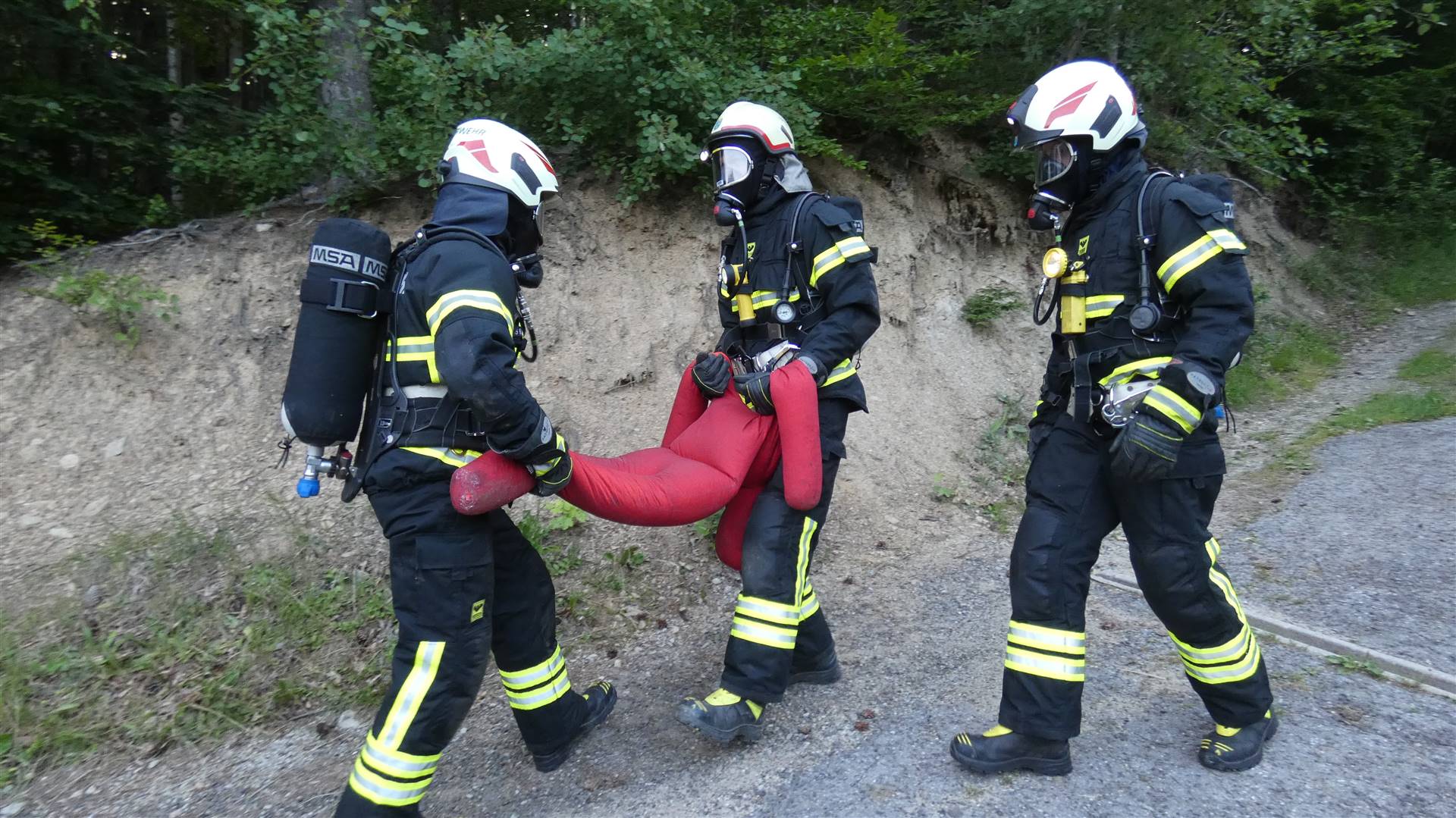 Bei der Ausbildungsprüfung geht es ausnahmsweise mal nicht um die Schnelligkeit, sondern viel mehr um die exakte Handhabung und die Zusammenarbeit untereinander, welche bei einer technischen Hilfeleistung sehr wichtig ist.